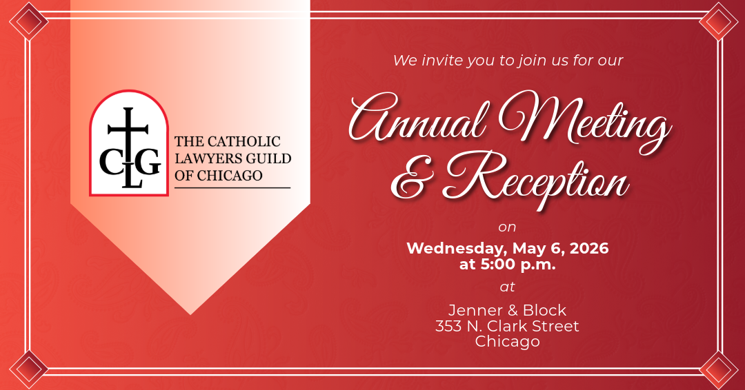 Please join us for the 2026 Annual Meeting of the Catholic Lawyers Guild of Chicago, where we will hold the election of officers and members of the Board of Governors.